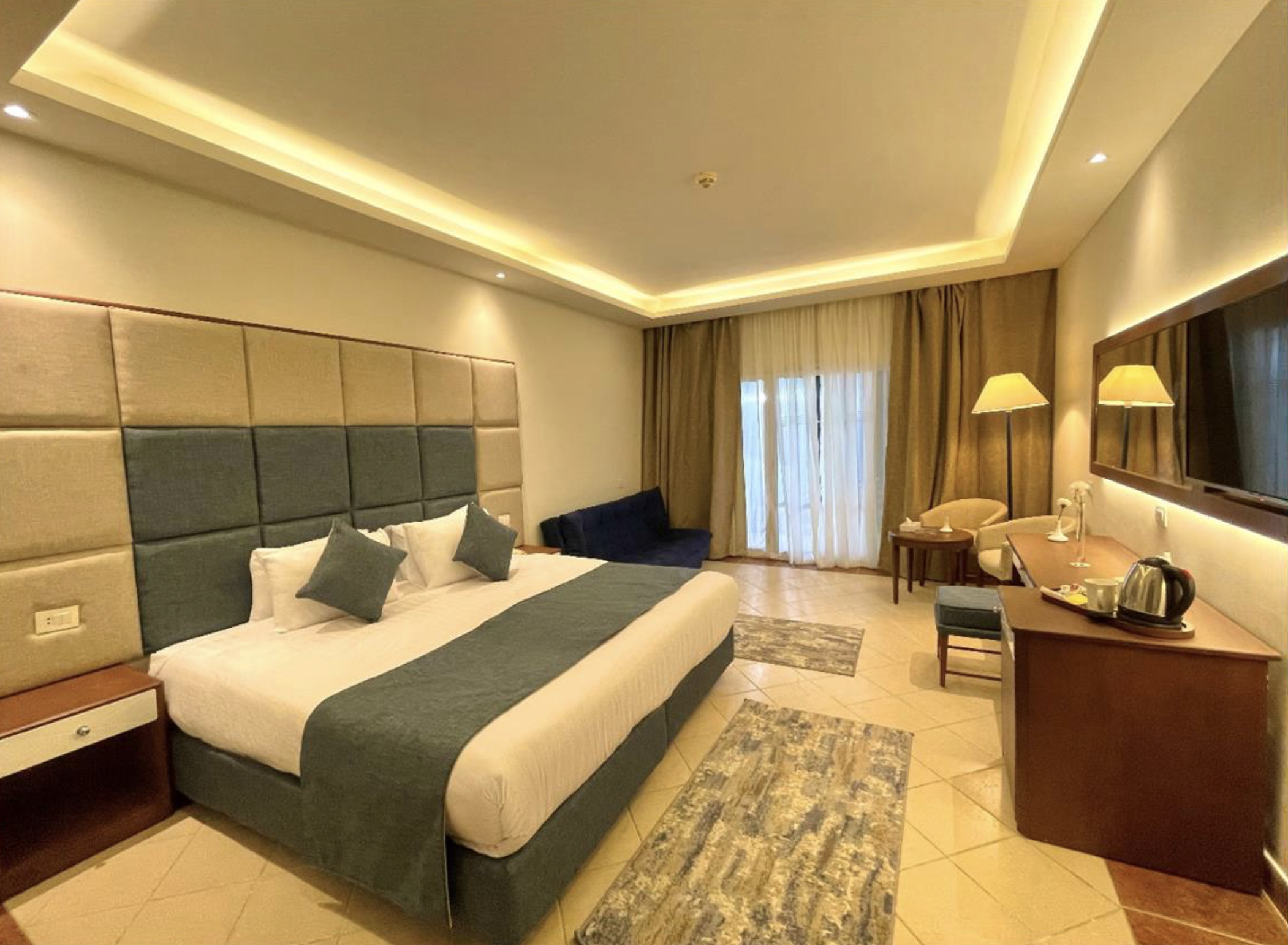 Spaziosa ed elegante, con vista mozzafiato sul Mar Rosso. Dotata di letto king-size e balcone privato. Dotata di ampia TV a schermo piatto, minibar e set per la preparazione di tè e caffè. Bagno con cabina doccia o vasca.