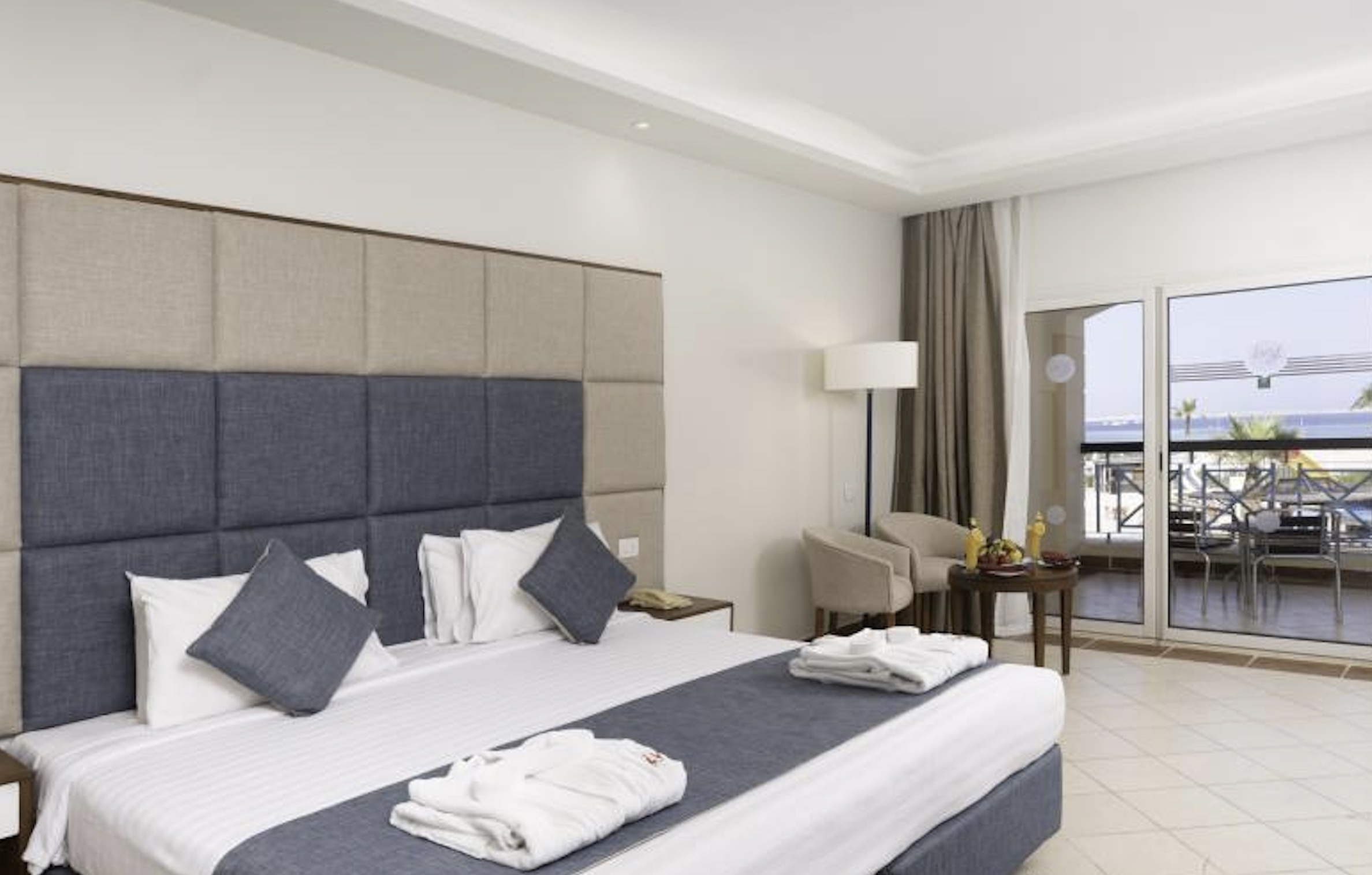 Spaziosa ed elegante, con vista mozzafiato sul Mar Rosso. Dotata di letto king-size e balcone privato. Dotata di ampia TV a schermo piatto, minibar e set per la preparazione di tè e caffè. Bagno con cabina doccia o vasca.