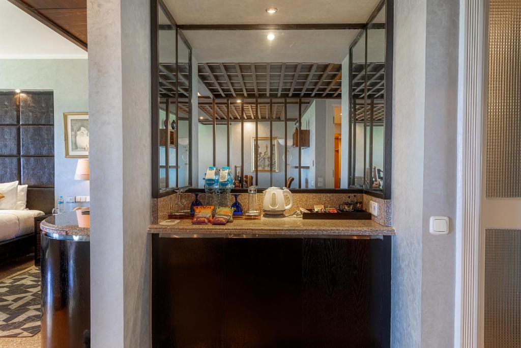 Offre diverse tipologie di camere (Deluxe, Superior Vista Mare, Suite, ecc.) con arredi moderni, dotate di balcone o terrazza, aria condizionata, TV satellitare, minibar e set per tè/caffè.