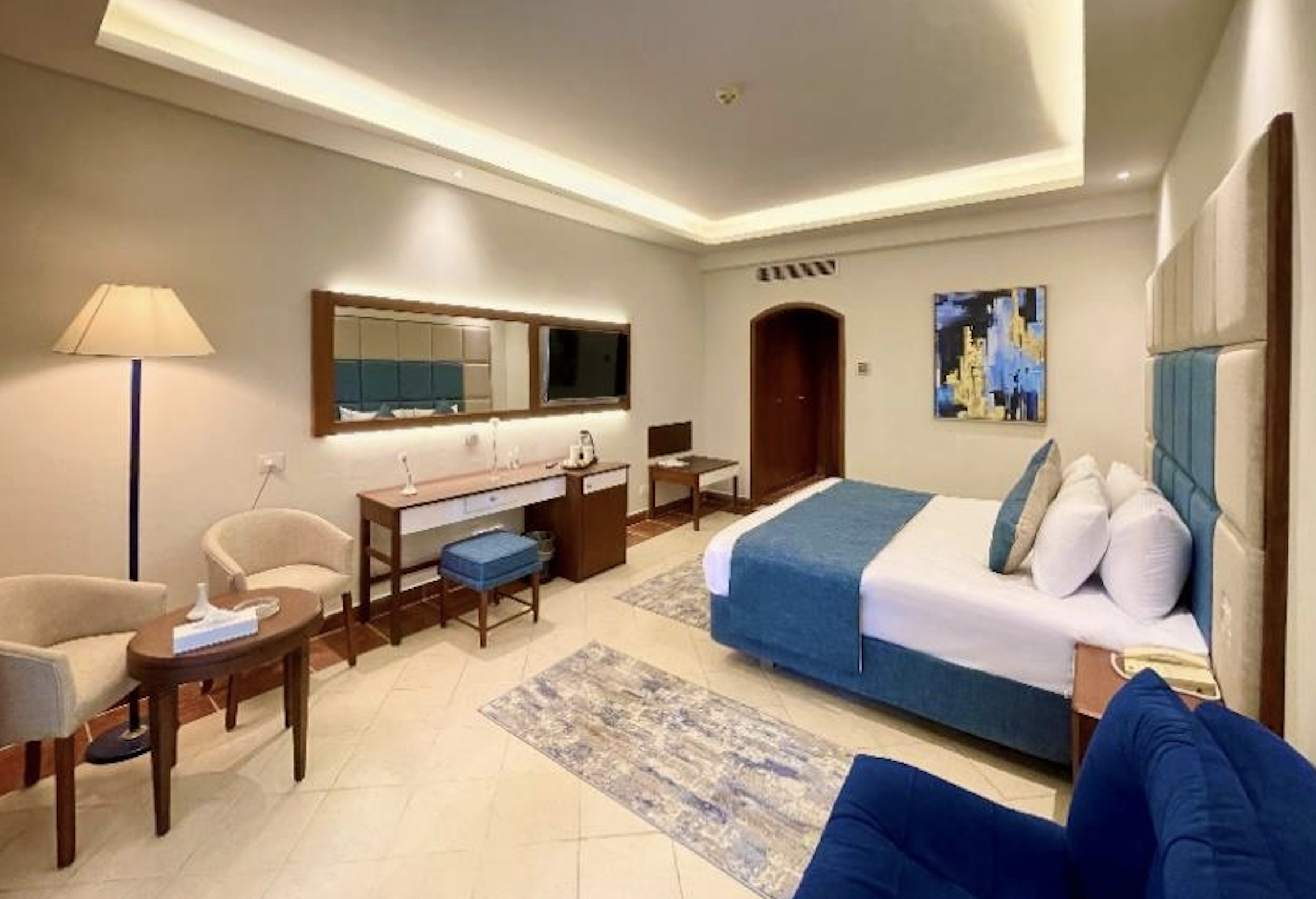 Spaziosa ed elegante, con vista mozzafiato sul Mar Rosso. Dotata di letto king-size e balcone privato. Dotata di ampia TV a schermo piatto, minibar e set per la preparazione di tè e caffè. Bagno con cabina doccia o vasca.